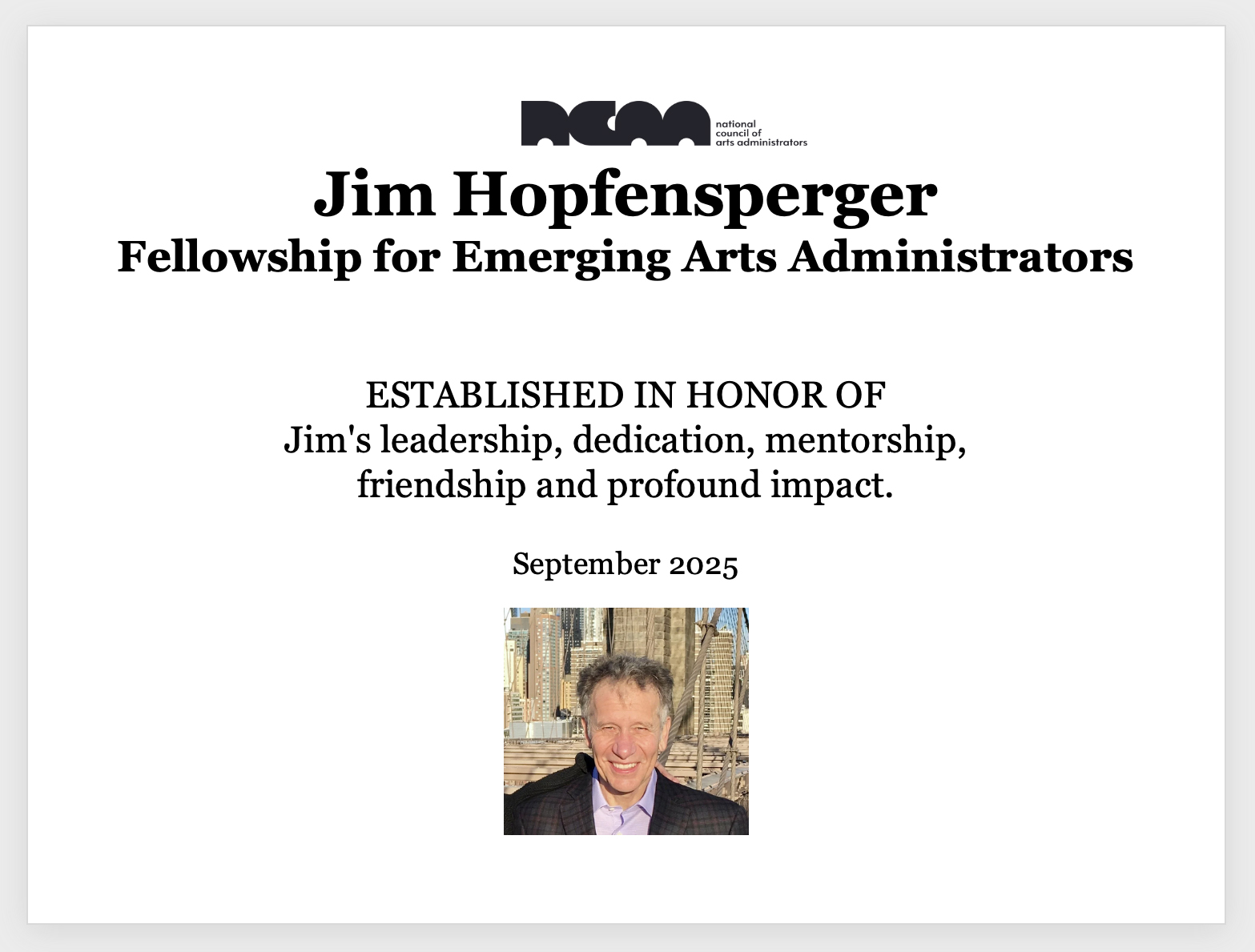 JIM HOPFENSPERGER FELLOWSHIP FOR EMERGING ARTS ADMINISTRATORS